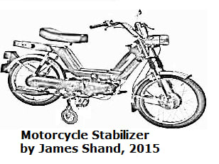The purpose of this invention is to automatically stabilize a two wheeled motorbike or scooter as it starts off, comes to a stop or is parked. The rider does not have to remove his/her feet from the foot rests as he/she approaches traffic lights or stops to park the bike,