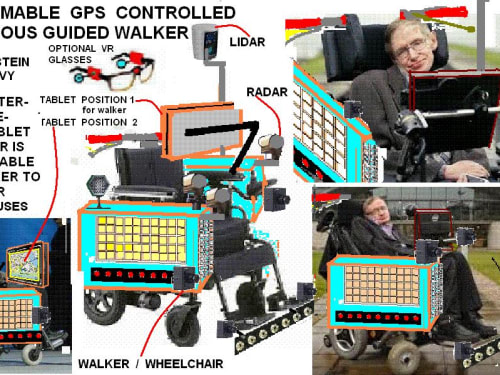 The invention of the Smart, Servo Driven, Talking, "Lead Me Where I Want to Go," GPS Controlled GUIDED WALKER, (whose controller is transferable to a“Take Me Where I Want to Go,” GPS Controlled Guided Wheelchair, or cart), is similar to Stanford University's autonomous vehicle, Stanley, Google's driverless car, and Tesla's self driving car.