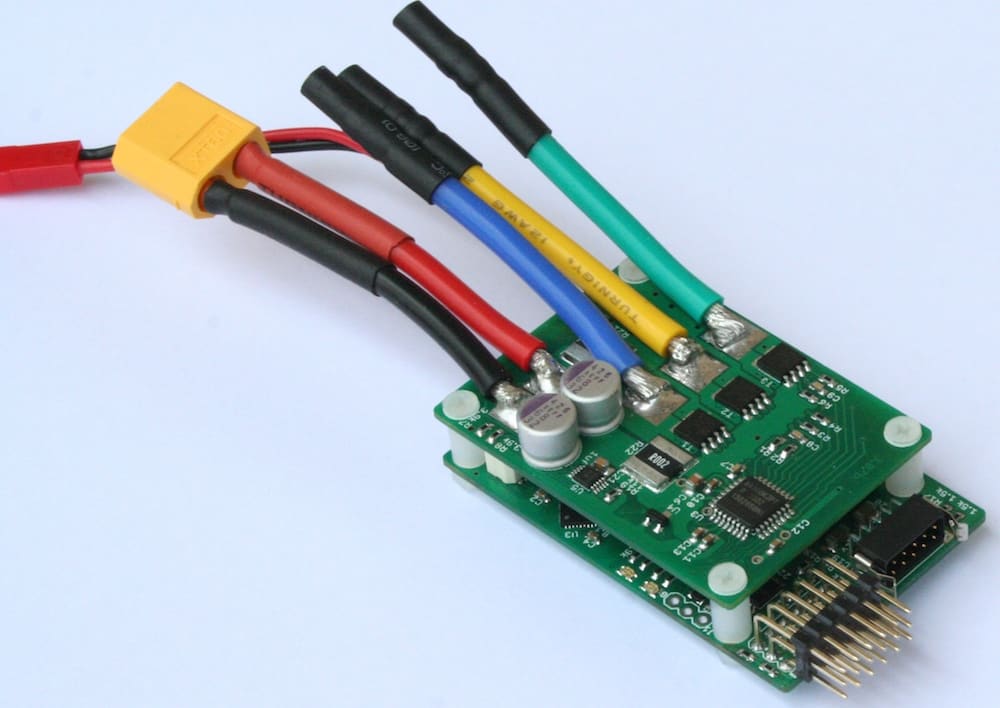 The motor controller provides one or four independent brushless motor control channels with feedback allowing reading RPM and the actual motor(s) current. The motor controller includes some intellectual reliability features, such as autonomous motor restart and pre-fail conditions monitor.