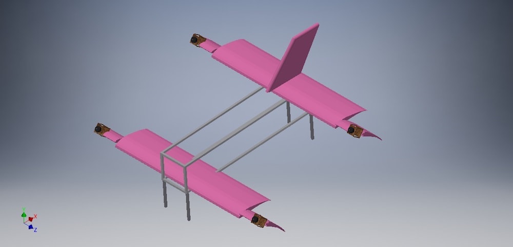 General aerodynamic analysis for wing and whole design carried out using Finite Element Analysis method. Result showed good Lift to Drag properties for wing and for whole design as well. I had already made a prototype of this design and currently working on the next prototype.The present present prototype is composed of four tilting ducted fans or turbofans (1),two backward swept wings (2),one vertical stabilizer (3), and the center fuselage(frame).