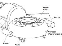 Vertoflyer can be launched and landed almost anywhere. The lift is ensured by the two powerplants. After vertical lift the throttles of the nozzles are gradually open and an horizontal thrust is created. If the horizontal speed increases sufficiently, a big part of the lift is created by the fixed wing and a small part by the two vertical powerplants.