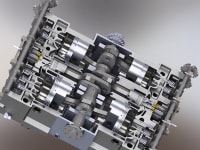 2) Power stroke every revolution – while this is not a two-stroke engine, it does have a combustion cycle every revolution, enhancing power density over a conventional engine.