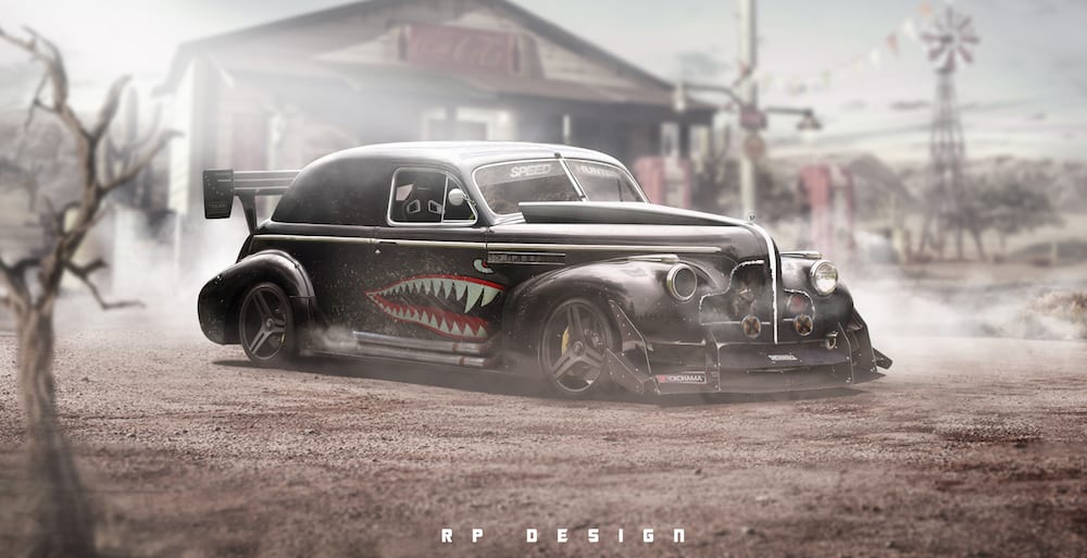 Buick Roadmaster was created for a purpouse of veteran road race. However, this visualization shows the car right after the race. The thrust wing and front bumper0 were specially created for this car. The car was droped and enriched with alloy wheels of dimensions: 350/35/R18 which should guarantee a perfect adhesion on a road. The car is aggregated by an engine 6,2 liters HEMI from a Ford Raptor so the torque should climb up to 800nm and should be transfered to all 4 wheels. The car uses similar system as BMW xDrive cars.