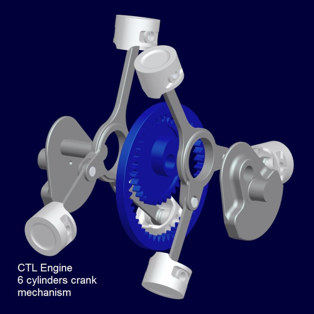 The CTL linkage allows to connect the same eccentric to up to 3 pistons with the axes arranged at 120°. It is also possible to add a second eccentric to the pinion on the opposite side respect to the first supporting therewith 6-pistons version, containing costs, size and weight of this engine respect to various Atkinson engines proposed in the past.