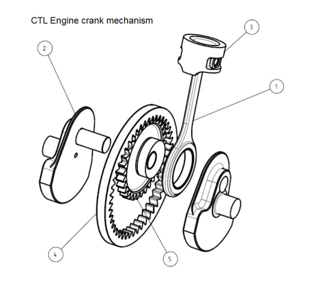 CTL Engineering has designed and built a test engine operating according to the Atkinson cycle which uses a new, compact, and simple crank mechanism, opening new perspectives for the industrial adoption of Atkinson's cycle based engines.