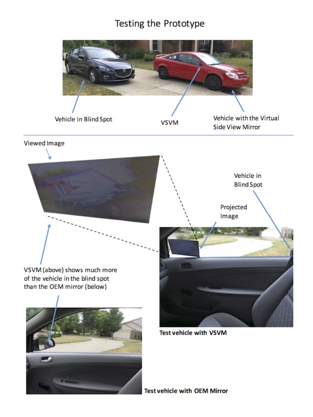 VSVM leverages only existing technologies, but is configured in a novel fashion to provide improvements and new utilities. A functional prototype has been successfully developed using an inexpensive camera, video projector, 3D printed housing, and a simple projection screen. In production, the cameras, video units, projectors, and the display units are aesthetically integrated within the vehicle design.