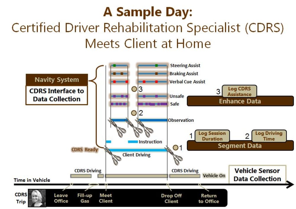 A. While working with driving schools, we can create high-fidelity driver training products to families with high-risk drivers (i.e. novice, medically-impaired/disabled, and older drivers). Navity's technology along with vehicle telematics (e.g. Snapshot by Progressive) could deliver a driver screening tool to advise physicians when their patient's health status declines or a medication prescribed is causing adverse effects. These services would be designed for a continuous, 6-mos, and monthly subscription package at 1/6th the cost of on-road driver's training.