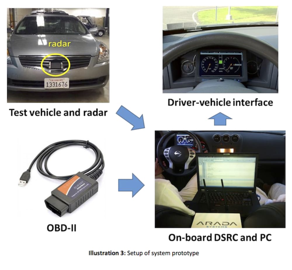 The GlidePath system prototype (see Illustration 3) has been developed and tested in a controlled environment (without other vehicles) and in real-world traffic. The results show travel time savings of 10-40% and fuel savings of 5-20% on average for the test vehicle. The system has also been evaluated in a traffic microsimulation environment under different levels of traffic congestion, technology penetration, and signal coordination. The results show that travel time and fuel saving benefits are gained not only by the vehicles equipped with the GlidePath system but also by the other vehicles, resulting in positive effects for the entire traffic. These results show the promise of the GlidePath system in improving the mobility and sustainability of future vehicles as well as roadway transportation systems.