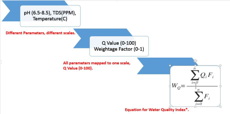 In an effort to develop a system to compare water quality in various parts of the country, over 100 water quality experts were called upon to help create a standard Water Quality Index (WQI). The index is basically a mathematical means of calculating a single value from multiple test results (9 parameters).