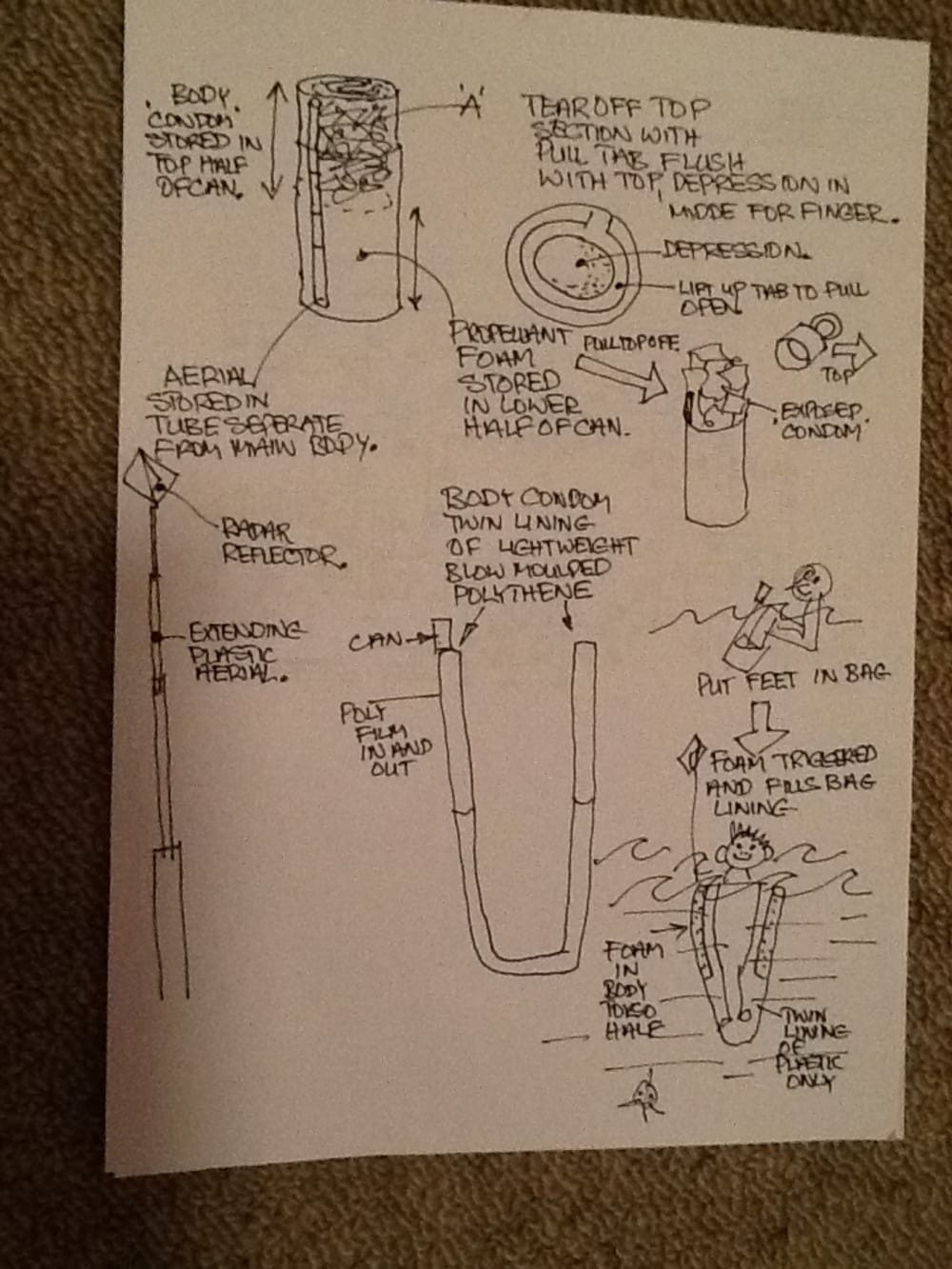 8- it allows small children who would not be capable of looking after themselves in a conventional life jacket to be held by a parent or on other person so that both are enclosed in the 'condom'