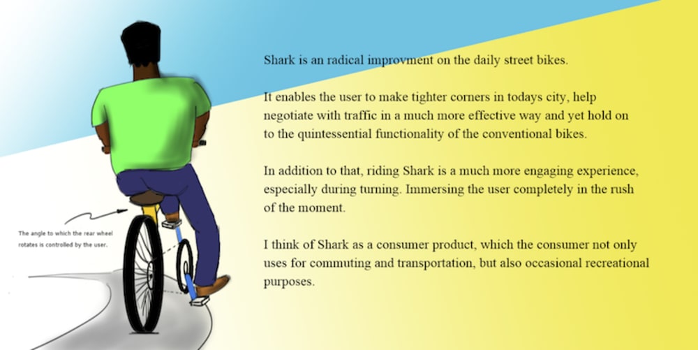 And if that's not reason enough, riding Shark would be tons of fun. It is much more engaging and requires much more user involvement, it invokes emotions. Riding conventional bicycles has become mundane, it's almost automatic and habitual.