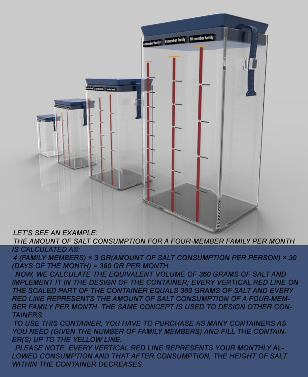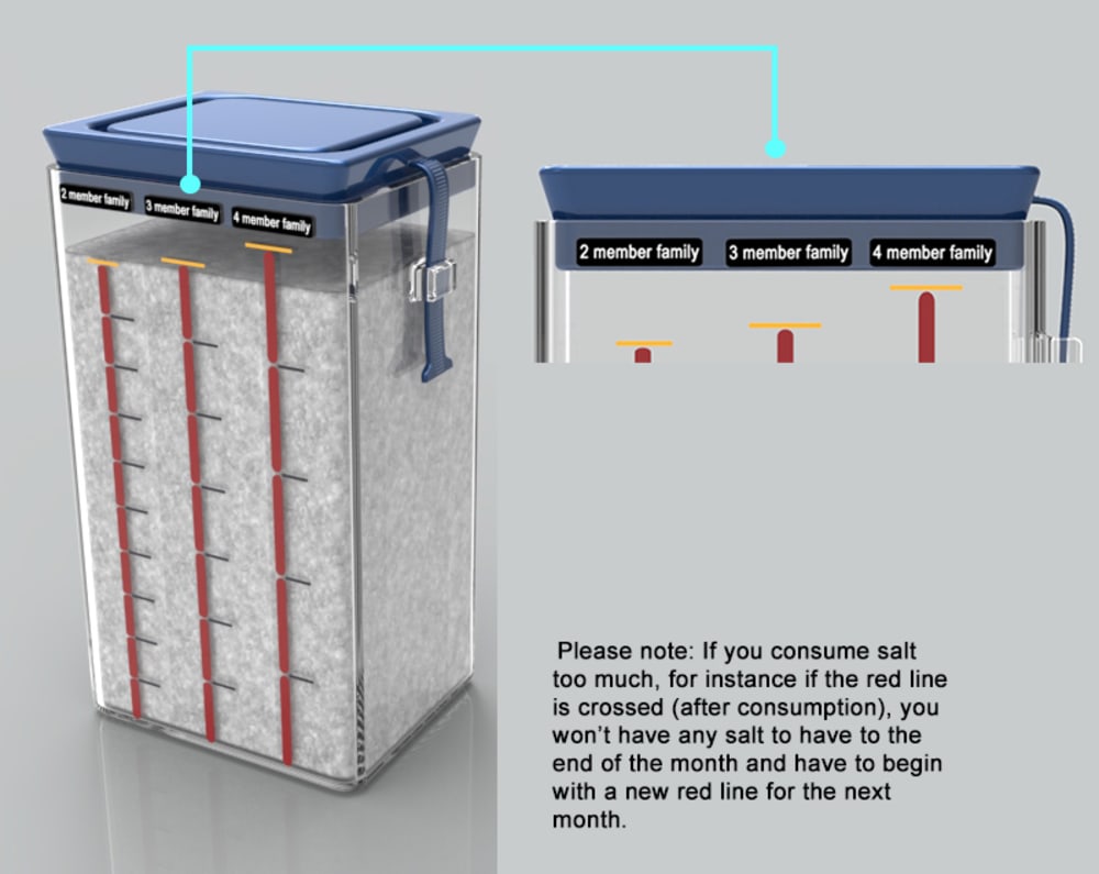 I have designed a container to control salt consumption in houses, which enables us to adjust the standard salt consumption in every family per month(s).