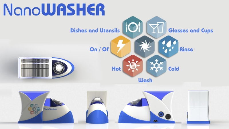 Just connect it to light and an inlet and outlet water, fill the container with soap, turn on, select your options and its going to be more enjoyable to wash the dishes, quick, effective and even greener than before. NanoWasher has a great combination of ideal choices for various kitchenwares and the use they have had. You can choose from soup plates (bowls), extended plates, utensils, cutlery and glasses, you can wash or rinse, you can even choose between cold and hot water for those tough stains. Just use the indicated cavity and turn the dishes into her. NanoWasher will use only the water needed, using less water than when you have an open key.