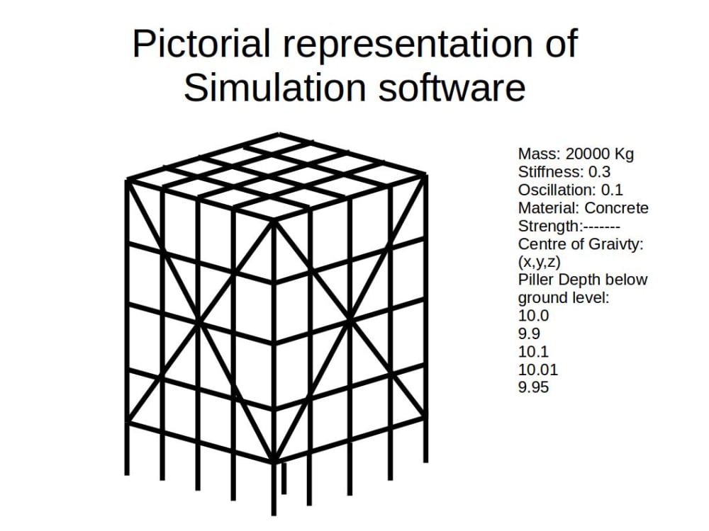b. Simulator: We are using modern physics simulation techniques to simulate earthquake response of given structure based on three dimensional model, construction material properties, building mass, stiffness and oscillatory response and identify safe zones, weak zones and build seismic profile of given locality.