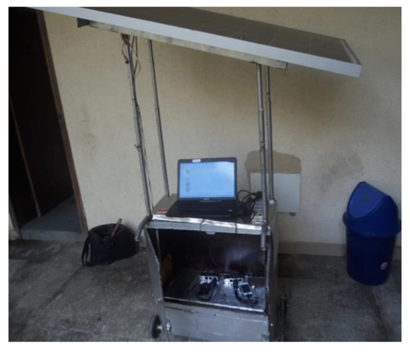 The SPMGK is made up a 200W solar PV panel, a 12V, 200AH storage battery, 30A-pwm charge controller, a 500W DC-AC inverter, AC & DC power outlets and LED lighting. The SPMGK was manufactured locally by assembling the listed components on a metallic frame and clutched wheels strong enough to support the weight and protect the accessories from water (in case it rains) and against vandalism by unauthorized persons. The mounting stand of the solar PV was made adjustable to cater for proper tilt in order to get maximum efficiency from the PV in the location where it is been utilized