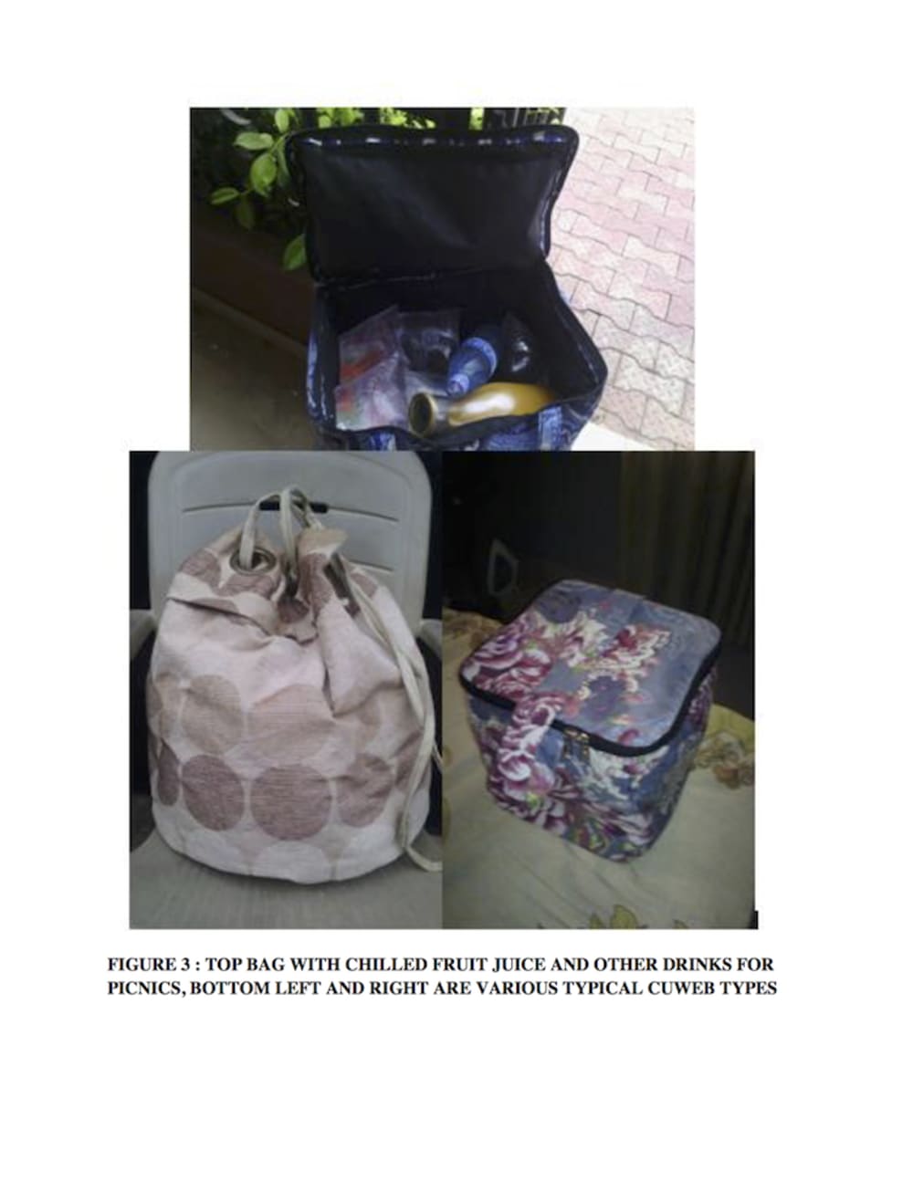 The CUWEB finds clear applications and use in homes (cooking/preservation), offices (lunch bag), hospitality/catering/events (picnics), small/medium scale businesses (hawkers mate), transporters (travelling companion); hawkers, food vendors, caterers, dairy product merchants, domestic use at homes, individual use as lunch boxes and as travelers/picnic delight. This makes it an explorer. We can save money, save the environment, live healthy by using the (CUWEREB).