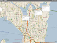 The OpenSpaces platform is minimalistic, quick, and easy to use: users decide which public resources and events to display, and the associated icons are shown on the map for a user-selected radius, with a default radius of five miles. Clicking on a specific icon brings up the name, or title, and a tag, limited to 75 characters, with helpful information about operating hours, specific amenities, etc. A user can then get directions to the icon from their current location.