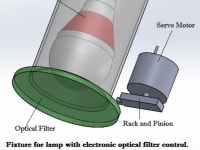 The product is an LED lamp fixture with IoT compatibility and an optical filter. A central unit which is the main controller can connect with multiple fixtures to automatically control when the optical filter is deployed. A small servo motor is used to control the deployment of the filter and it receives its signal from the central control unit. The central unit can be controlled and used through a smartphone app. It allows the user to set the time when they would want the automatic blue light filter to activate. It will also come with a override function in case the user is engaged in an activity which requires unfiltered light access.