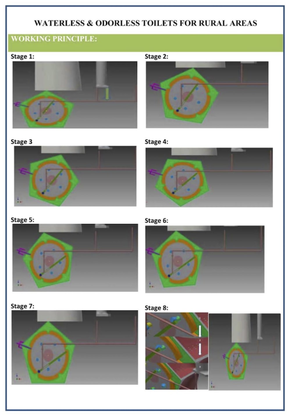 The waterless and odorless toilet is mainly designed to reduce the consumption of water and also reduce the odor created while using the toilet. The invention could surely replace toilet systems which use 5 to 10 liters of water for a single flush. Also, in places where water is scarce and even in drought affected areas of the nation. When liquid and solid waste gets mixed together as in conventional pit toilet, both start to ferment and emit a bad odor. Both scenarios can affect the heath of the users and even can lead to spread of disease. In odorless toilets, they are kept separate, this fermentation does not occur or is minimized and there is no/minimal smell produced. The process is done mechanically and won’t affect the environment at any cause as no chemical is used.