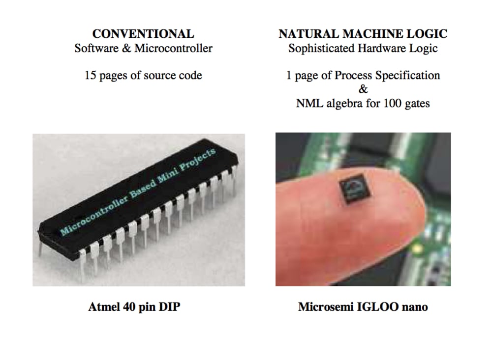NML safety control, and mission- and time-critical functions can be configured and reconfigured in field-programmable logic arrays (FPGAs) within machine controllers by using a smart-phone app. As an alternative to computation, NML is just the thing for pre-software economies.