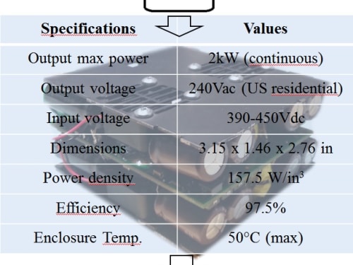 Our ultra-small inverter, designed in 2015, allows converting DC high voltage into residential AC voltage. A prototype was built in Q3 2015. Existing similar converters currently on the market are more than 30 times bigger.