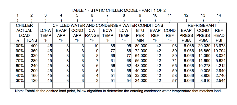A static customized model can be produced in a spread sheet. From the spread sheet model regression formulas are produced for use by existing control system provided by a number of current automation and control vendors for chiller plants.