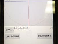 b).- Cell screen shows two lines, one for the current cell angle (calculated by the gravity sensor), and the other shows the line angle required by the pattern.