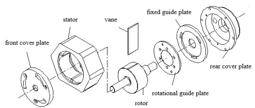 This innovative compressor is a hybrid design based on rotary vane compressors and compressors of other conventional types. It consists of an inlet guide plate, a stator, a rotor, an outlet plate and a vane. The design of the stator with the three-lobe inner contour was based on the envelope theorem. Only the rotor and the vane are the moving parts to reduce the potential failure of the compressor.