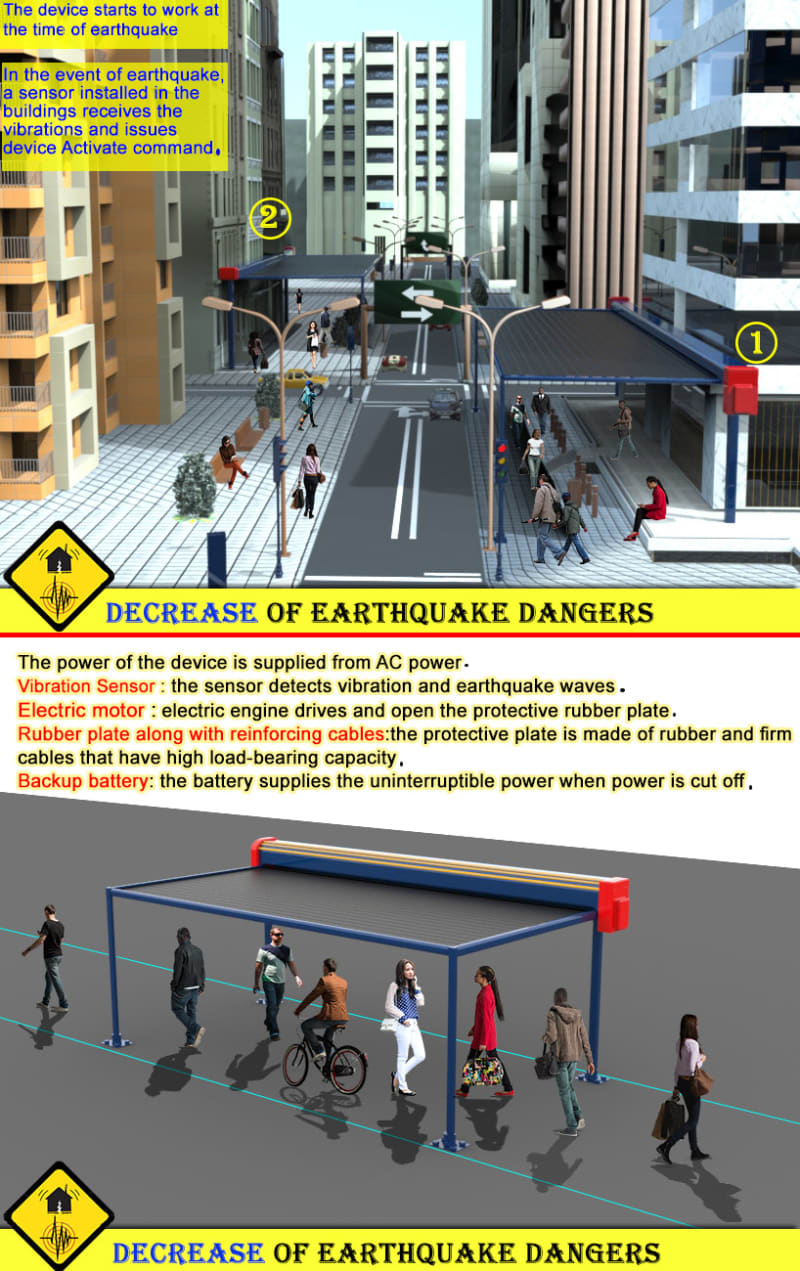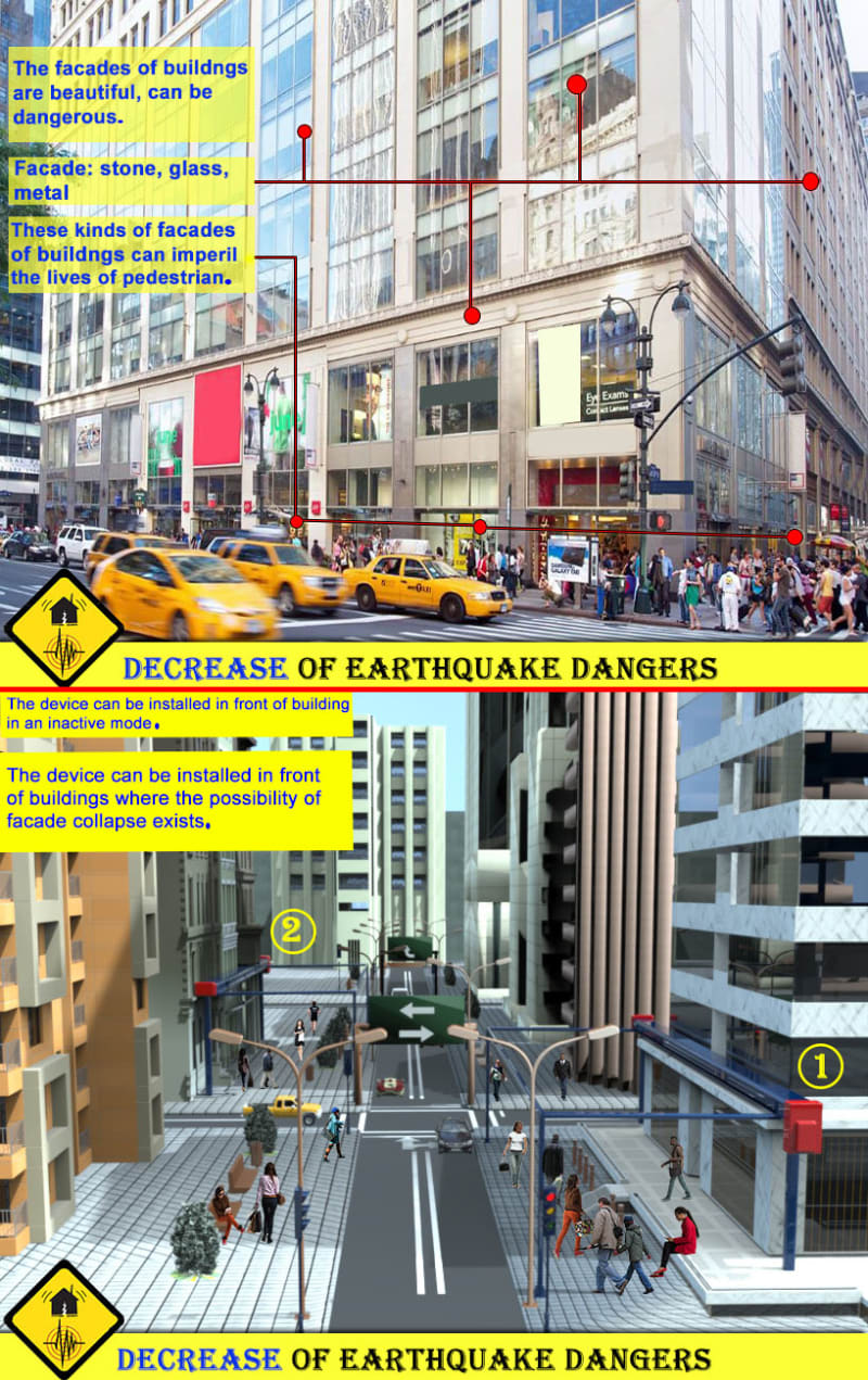 Many buildings can be identified in crowded and busy streets where the possibility of the collapse of part of their facade exist and the device can be installed in front of it, so the dangers will be reduced to a minimum.