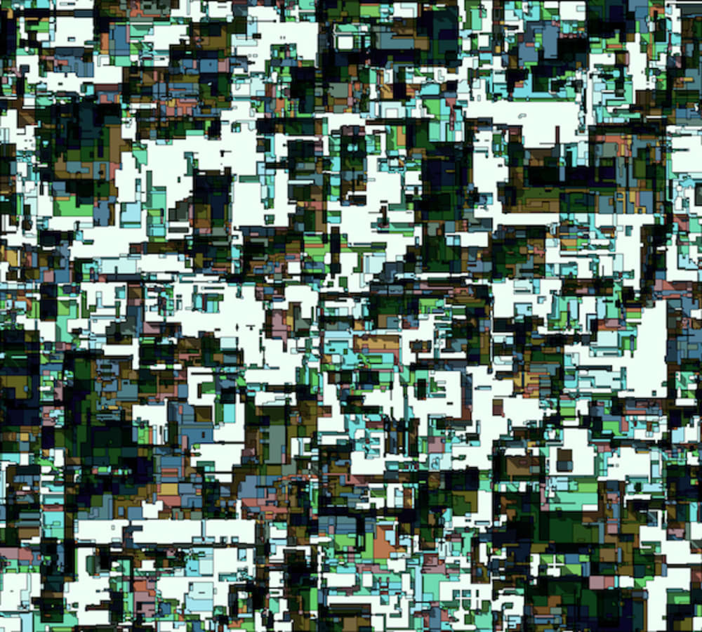 However, its scale and complexity will render it unbearable to be designed or built using conventional procedures. This research project intends to develop a technique for drafting complex modular components, capable of combining within themselves in order to conform an infinite tissue. The array procedure articulates the development of the form, in a similar way nano-mechanisms will be manufactured at industrial scale: by automated assembly. It’s a design and drafting mechanic I call “Reiterated Synthesis”. For all this occurs as simulations inside computers, it uses pixels as basic building blocks. This Cartesian morphology, although reductionist and dissimilar from crystallographic geometry found in solid molecules, can provide a glance on how to compose such structures.