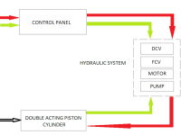 As the sensor passes from the stem of the plant it gives the signal to control panel, which further gives signal to solenoid operated DCV for forward stroke. This action extends the blade to remove the weeds from the roots between successive plants. Above two process are shown in green,red color in block diagram.