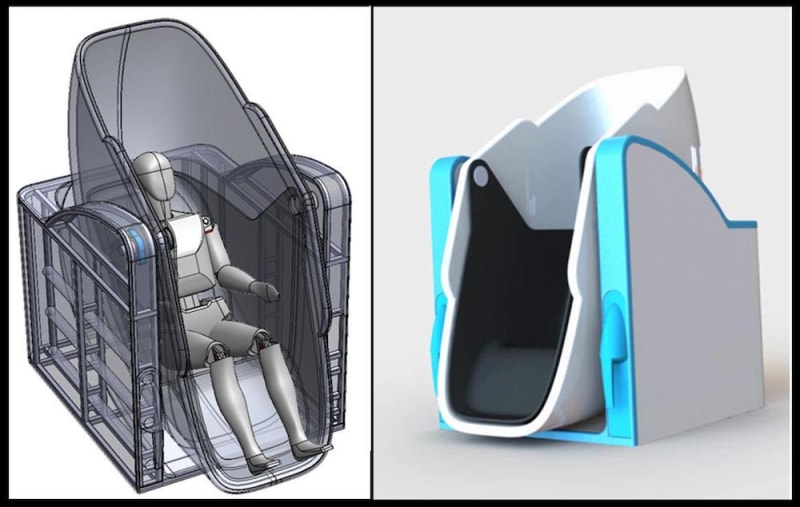 When the switch is put on “start” mode, the position of the entrance into the pod would be directly facing the user based on a vertical position while 2 sets of barrier gates situated on both the left and right side of the pod would be automatically extended outwards. Their action is to prevent anybody from standing too near to the bath especially when the pod is starting to rotate. When a user wants to take a bath, what they should do is to walk inside the bath device, sit down comfortably while for those with special needs they should strap themselves with the safety harness hanging from the rear of their seat before activating the switch to launch the pod to move into the next stage.