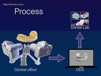 Time and cost saving dentures design and manufacturing cloud system. As a part of treatment, patient's jaw impression is being digitalized and uploaded to DDS cloud, where it is encrypted and could be used in DDS cloud CAD for denture design. After modeling, being shown to patient and approved, product is sent to local milling center, where it is manufactured and sent back to doctor and installed into patient's mouth.