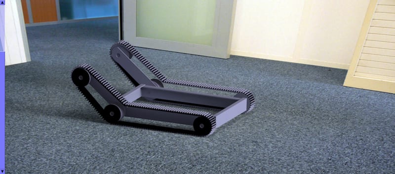 Primary feature of our prototype is stair climbing. Here the caterpillar track belt mechanism has been installed so that it can move smoothly and also climb the stairs easily. It can climb with an angle of 30 degree approx. Since it is a model made in 3:1 ratio, it can carry a load of maximum 30kg approx. During stair climbing, the wheelchair is in an inclined position. This may cause difficulties for the user. To avoid this, an automatic height adjusting mechanism has been used in the main wheel chair so that at the time of stair climbing it automatically keeps the system horizontal to the ground.