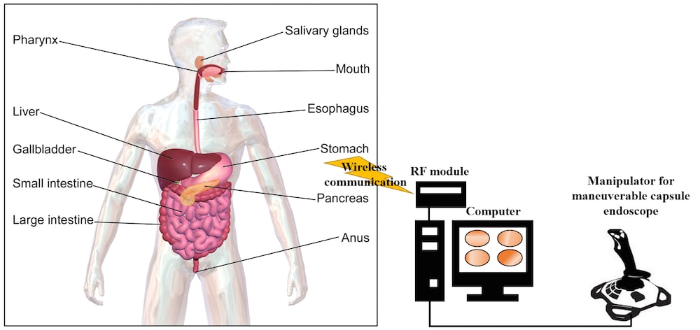 In summary, the terminal velocity achieved is sufficient enough to maneuver inside the stomach organ. This will result in more robust and safer diagnosis method since it can be maneuvered freely and take wanted images of the gastrointestinal space. The proposed system’s applicability is demonstrated by flow simulation and 3D path-following simulation. Therefore, this novel MCE concept could be used for detecting and diagnosing abnormalities in the digestive system with improved efficacy and patient convenience.
