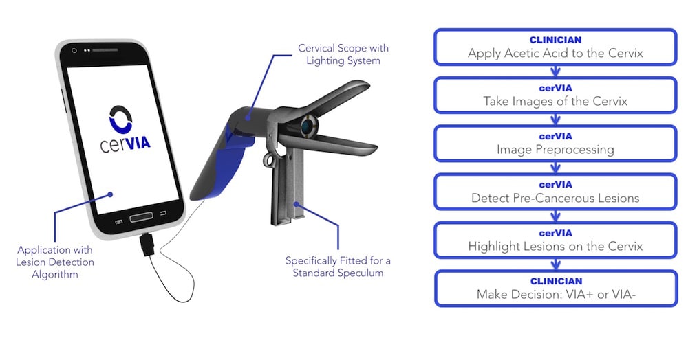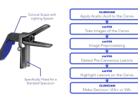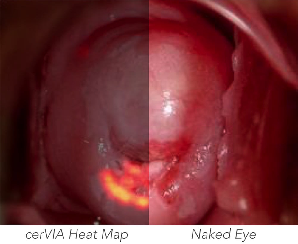 Visual inspection with acetic acid (VIA) testing has emerged as the standard for cervical cancer screening in LMICs because of its accessibility and affordability. Clinicians perform VIA by applying diluted vinegar to the patient’s cervix and inspecting it for whitened precancerous lesions after a few minutes. Unfortunately, VIA shows poor diagnostic accuracy due to the inherent subjectivity of visualizing precancerous cervical lesions, the inconsistent lighting conditions in clinics and the inadequate precancerous lesion detection training typically provided in LMICs.