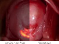 While competitors look to supplant VIA with resource-intensive methods or supplement VIA with expensive mobile colposcopes, the cerVIA system’s potential lies in its simple operation that complements standard VIA testing with objective, accurate analyses at a competitively low price of ~$1.10 per patient. In preliminary diagnostic testing, our algorithm increased testing sensitivity and specificity to 91.7% and 88.6%, respectively, demonstrating a ~23% improvement over conventional VIA.