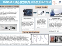 Our heart phantom is a novel improvement of commercially available heart phantoms as our device is multimodal, dynamic, modular, and inexpensive. The phantom’s multimodality is a derivative of materials tested to be X-ray CT, fMRI, and ultrasound compatible, allowing heart pathologies to be imaged and quantified through several avenues. Operating as a stepper motor moves a syringe via a crank-slider mechanism, the phantom mimics a heartbeat by causing fluids to fill or leave the bi-lobe silicone phantom design. This dynamic nature of the phantom lends it the ability to calibrate imaging techniques to the movement of tissue. By contrast, modern heart phantoms tend to be static and thereby incompatible for time-dependent cardiac tissue simulation.