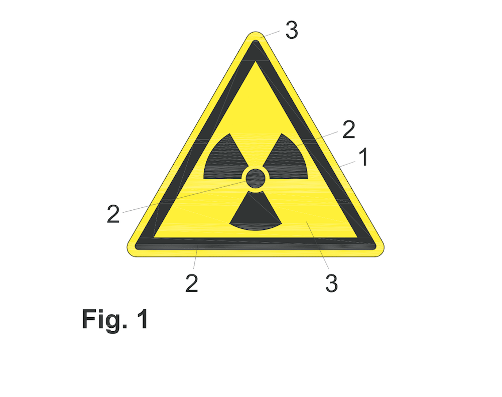 As display unit for warning of radioactive radiation, for instance, in accordance with Fig.1, a triangular-shaped optical substrate 1 of glass or plastic is used and solar cells 2 are applied in segments on its surface as a pictogram. After the electric wiring of the solar cell segments 2 is completed, the areas on the optical substrate that are not used by the solar cells are coated with a yellow fluorescence layer 3, also representing a design feature of the information carrier of the display unit. In such a way, the display symbols are formed by solar cells and a fluorescence layer. The solar cells applied in the form of segments deliver electric current that can be used for lighting the display units with light emtting diodes or for further autonomous consumers. Moreover, the yellow fluorescence layer located on the optical substrate and serving as display feature directs the radiation impinging on them to the segment-shaped solar cells, causing there a radiation concentration and current intensification.
