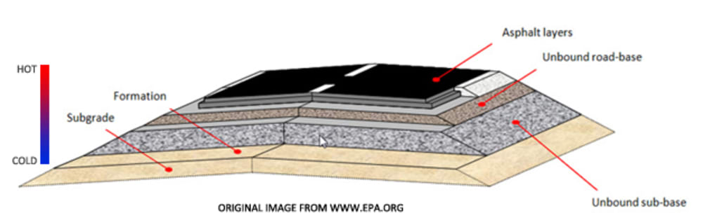 The surface of roads can reach temperatures of 50-60 C, while the ground beneath them remains as a near constant 10-16 C. This temperature difference can drive a thermoelectric generator to create electrical power. Oxide based thermoelectric materials can be placed underneath the top layer of the road, thus leaving the road virtually untouched. The asphalt will still continue to provide proper traction and handling capabilities, and the compressed oxide layers will provide the normal structural support of the road.