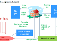 - kitchen waste is first used to produce bio gas and then the residue is turned to manure for roof/home garden to grow vegetables and food crops