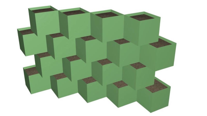 Existing plastic pots for plants have no such ergonomic form to build of them green walls. These blocks are more compact and steady.