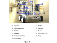 Thus, such invention can be a combination of the four previous mentioned devices. So, the invention needs some sophisticated connections and control system of the whole four parts to ensure that the integration between them is accomplished. Therefore, the inputs of the first part as electrical power generator are air and fuel (biogas formed in the second part and/or percentage of the syngas produced by the third part). So, the outputs of such first part is electrical power as final product in addition to high temperature exhaust gases as source of heat and partially oxygenated gases to be input to the third part of this invention for achieving the gasification process.