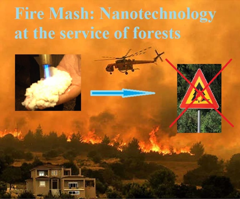 Forest fires in rural areas and semi-urban surroundings present a significant challenge to the departments of forestry, fire protection and wildland fire-control services in many parts of the world, with Ontario-Canada being the latest example in this regard. Not only does the massive extinguishing effort require novel solutions to enhance the efficiency of the fire suppression, isolation, blanketing and cooling operations, it also necessitates wise environmental strategies for the aftermath of the fire, to ensure rapid restoration of affected areas in an ecologically sound way. Our invention, the Fire Mash, emerges as a proven nanotechnology solution with rapid fire suppression, complete extinguishing (i.e. no slow fires where the partial burning process continues for weeks in many cases) and a fast ecological restoration effect in wildlands devastated by forest fires owing to its forest soil compatible 'green' formulation promoting reclamation by the nature.