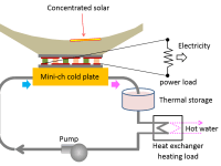 This design concept provides a key component of a solar concentrated combined heat and power (CHP) system for saving primary energy consumption in cold climate zones. The energy for residential space heating and hot water supply in climate zone 5 in the United States requires a significant amount of primary energy from legacy resources; reaching 4.67 Quads alone in 2013. I will develop a unique wall-mounted system that consists of electric power generation by thermoelectric (TE) and heat generation for heating tap water simultaneously. Approximately 60% of solar energy is collected in hot water and 5% will be generated as power with currently available TE materials (ZT 1.2-1.8). Unlike photovoltaics, the device is designed to maximize the energy production at the lowest sun angle (deep in the winter). By 80x - 300x concentration with Fresnel lens with 0.1 m2 area coverage, approximately 2 cm x 2 cm size generators cell will be designed for a scalability and super lightweight (~1/100) compare to a conventional rooftop solar-thermal collector. The cost in large volume production may be similar to photovoltaic cells. By 5% of penetration, total 0.312 Quads of primary energy equivalent will be saved.
