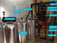 Energy is stored in multiple insulated tanks that are heated sequentially (Fig 2). Separation valves between tanks allow each tank to be fully heated before the next tank volume is added. As each individual tank reaches its desired temperature, the next tank is brought in by opening a tank separation valve. Using multiple sequential tanks allows the system to maintain higher temperatures and allows the total tank volume to be optimized.