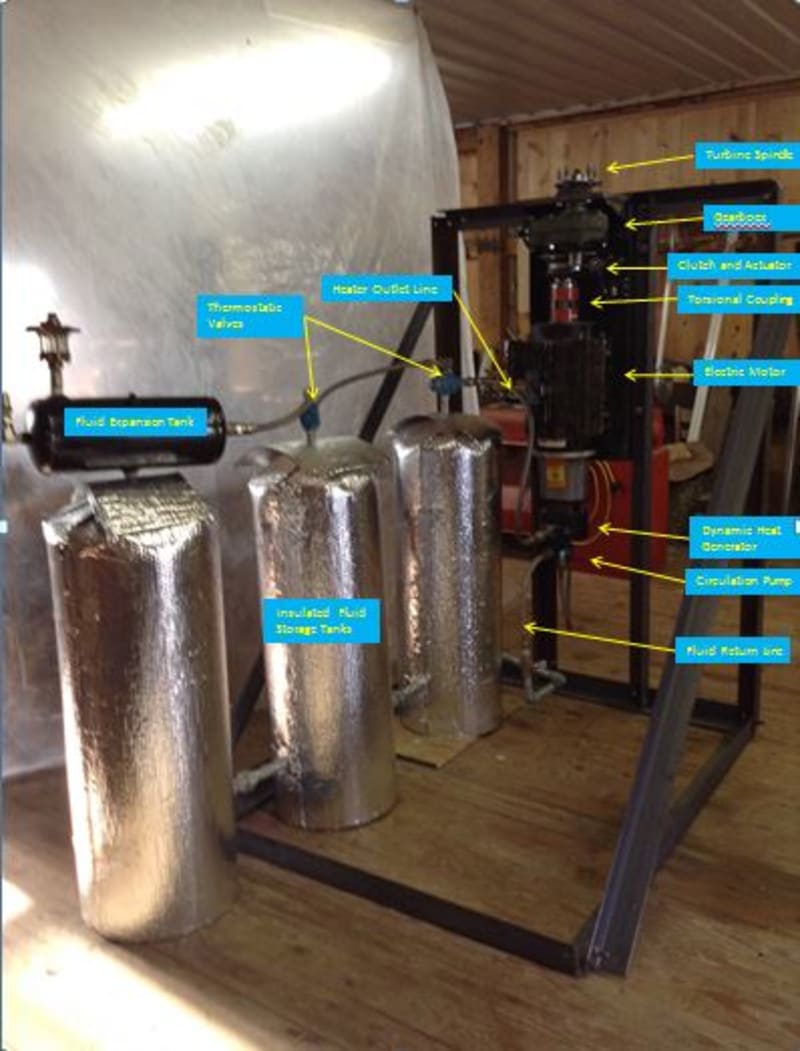 A prototype system with gearbox and current production DHG has been built. Next step is to eliminate the transmission, install the wind DHG and source turbine.
