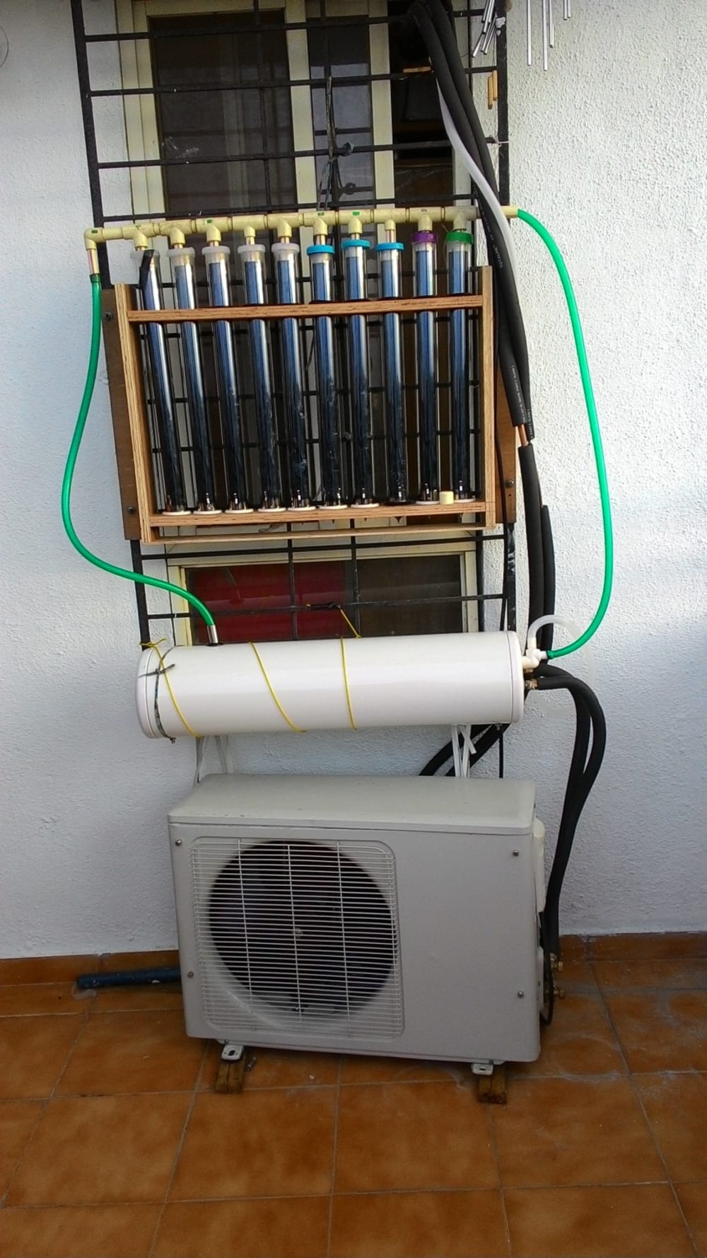 The embodiment of the hybrid AC system contains standard compressor, evaporator, condenser and refrigerant. A solar hybrid air conditioning system is adapted for converting waste heat energy into useful heat energy. The system includes a plurality of heat absorbing units, a heat exchange unit, a coolant, a condenser, an expansion valve, a control unit and an evaporator. The plurality of heat absorbing units is adapted to absorb the waste heat energy from the environment. The heat exchange unit is adapted to exchange the absorbed heat energy to the compressor unit. The compressor unit utilizes the absorbed heat energy for increasing the temperature and pressure of the coolant. The condenser is adapted to condense the high temperature and pressure coolant into a liquid. The expansion valve is adapted to reduce the pressure and temperature of the liquid coolant. The evaporator is adapted to evaporate the coolant from a liquid state into a gaseous state. It can be used for big premises, high rise buildings ,and vehicles.