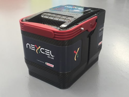 The NEXCEL system is a sealed oil cell that contains both the engine oil and the oil filter, which means it can be easily removed and replaced by hand, a process that takes just 90 seconds.