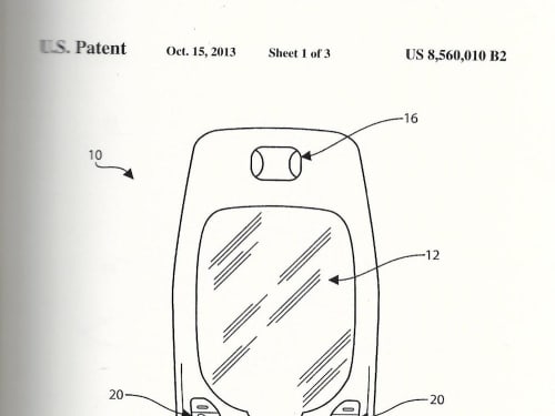 Cell phone with breathe analyzer, US Patent 8,560,010 utility patent, is designed to test a driver's breathe for alcohol before driving a vehicle.